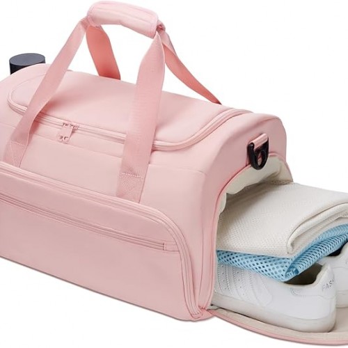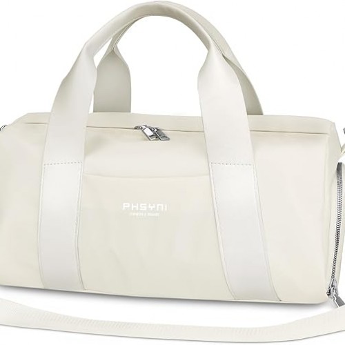 Gym Bag for Women and Men with Shoe Compartment & Wet Pocket – Duffle Bag for Travel Sports Fitness Workout Athletic, 19″-Medium, Beige