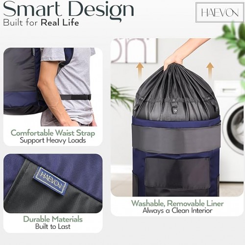 - Durability for Heavy Loads: Engineered as a laundry backpack heavy duty solution, this bag is crafted from robust materials that can reliably carry large loads; enjoy uninterrupted laundry routines without fear of the bag tearing or wearing out, ensuring long-term durability and peace of mind.