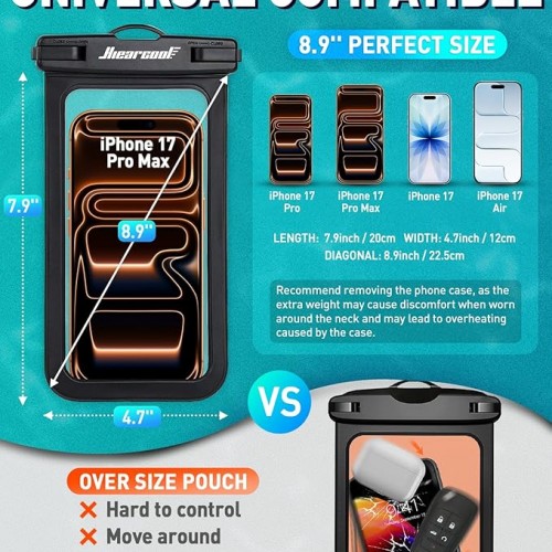 Hiearcool Waterproof Phone Pouch, Waterproof Beach Bag Compatible for iPhone 17 16 15 14 13 Pro Max, IPX8 Cellphone Travel Essentials for Beach -Black & Sky Blue-2Pack