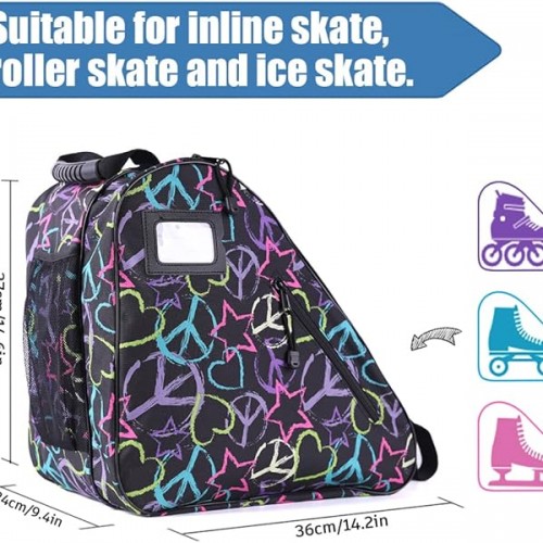 Holisogn Ice, Figure, Inline and Roller Skate Bag, Premium and Fashion Bags for child, kids, teenager, adult (Peace & Love Black HLS002)