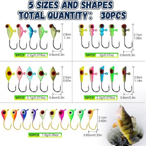 - 【5 Proven Designs, Complete Sizes】Command attention with this complete ice fishing jigs kit. It includes 5 high-performing shapes: Dolphin, Bird, Matchstick, Minnow, and Beaded, ensuring you have the perfect ice fishing jig for targeting panfish, walleye, or bass. A versatile core of your ice fishing gear.