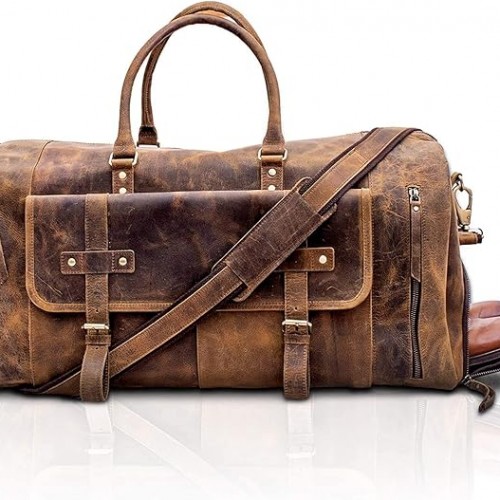 KomalC 28 inch Duffel Bag Travel Sports Overnight Weekend Leather Duffle Bag for Gym Sports Cabin Holdall bag (Distressed Brown)