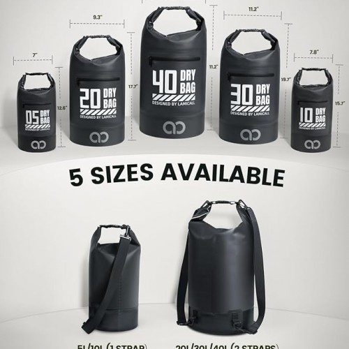 Lamicall Dry Bag, Waterproof Bag – [Durable & Floating] 5L/10L/20L/30L/40L Roll Top Drybag with Water Proof Phone Pouch for Travel Swimming Boating Kayaking Paddle Board Camping Beach Accessories