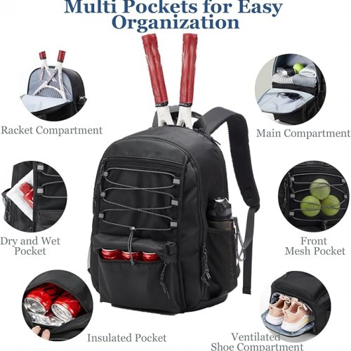 LANBX Tennis Bag, Tennis Backpack for Women Men 2 Rackets with Insulated Pocket Shoe Compartemnt for Pickleball Tennis