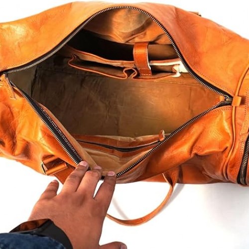Large Leather 24 Inch Luggage Handmade Duffel Bag Carryall Weekender Airplane Travel Overnight Gym Sports Carry On Duffel Bag For Men And Women