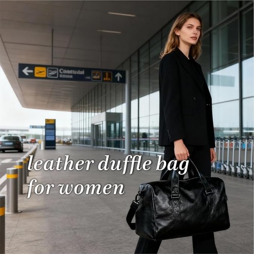 Leather Travel Bag with Shoes Compartment & Wet Pocket, Sports Gym Tote Bag Travel Duffel for Men & Women, Overnight Weekender Bag Waterproof Leather Large Carry On Bag