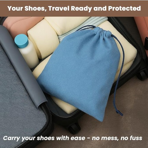 LFH Cotton Rich Shoe Storage Bags with Drawstring, Dustproof Breathable Reusable Organizer, Perfect For Travel, Dorm, Hotel, College, Gym, Easy to Carry, Machine Washable 8″x17″ (Pack of 2) – Sky Blue