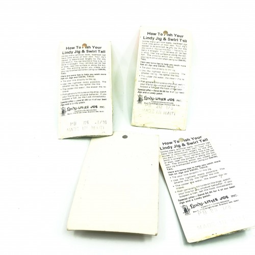 Lindy Little Joe Swirl Tail & Fuzz-E-Grub Spin Pack. This vintage pack contains 3 packages of Lindy Swirl Tails and 1 Lindy Fuzz-E-Grub Spinner. All of these are 1/8oz. The Swirl tail packages come with two heads and three tails. All packages are unopened. See photos.