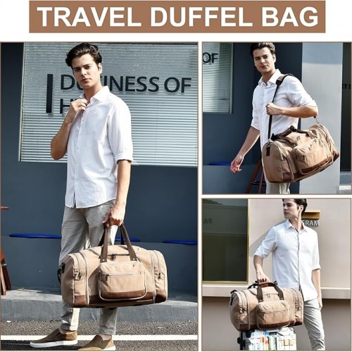Litvyak Duffle Bag for Travel, 50L Canvas Travel Duffel Bags Overnight Weekend Gym Carry On Luggage Bag for Men & Women(Coffee)