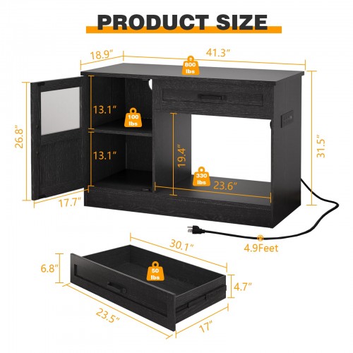 LUMIINOFAMI 40 Gallon Tank Stand, Wooden Aquarium Stand 40 Gallon Fish Tank Stand with Drawer, Reptile Tank Stand With Power Strip and LED, Fish Tank with Stand