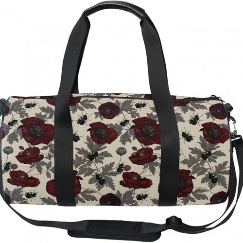 MNSRUU Sports Duffel Bags, Poppy Beetle Athletic Gym Bag Overnight Workout Travel Tote Luggage for Men Women Yoga