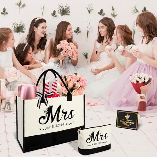 - Mrs Gifts Bag for Bride: This excellent gift set is a great way to celebrate you becoming a Mrs. It will make any future Mrs. very happy if you—as a friend, family member, colleague, or lover—give gifts to the bride-to-be on her special day. The bridal shower gift includes: 1 x Mrs. 2026 tote bag, 1 x makeup bag, 1 x greeting card.