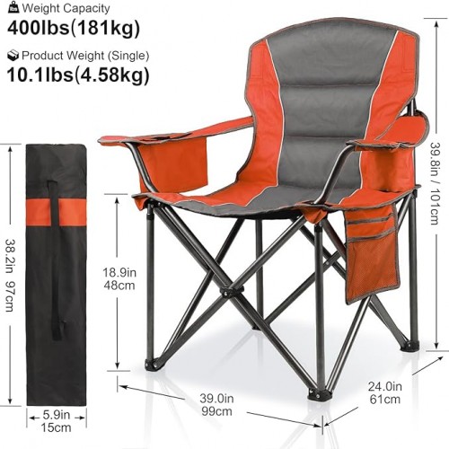 - Heavy-Duty Support for Ultimate Relaxation – Engineered for superior strength and stability, our camping chair features a robust steel frame and reinforced construction to safely hold up to 400 lbs. Enjoy peace of mind with a design built for long-lasting durability and unwavering support on any terrain.