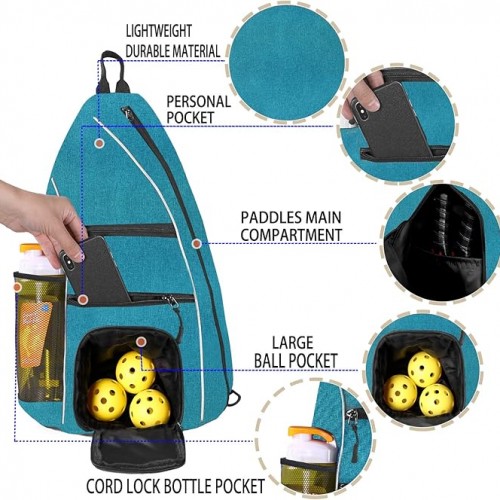 - PERFECT PICKLEBALL BAG: The sports sling backpack was designed in style for professional pickleball equipment, it is roomy enough to keep everything in order. All of the zippers are attached by cord with cover, high quality zippers are easy to pull smoothly. Best Essential Companion For Your Pickle Ball Sports !!