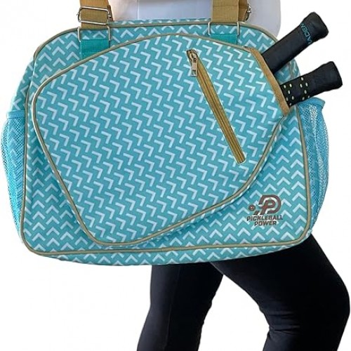- DESIGN: This bag is beautifully designed with an outstanding mix of teal & gold colors. The padded shoulder straps are easily adjustable which assure you of a comfortable length to meet your personal needs. Stainless steel “feet” have been included on the bottom to protect the bag from wear and tear. The bag includes a long-lasting professionally printed “Pickleball Power” logo in gold ink on the side.