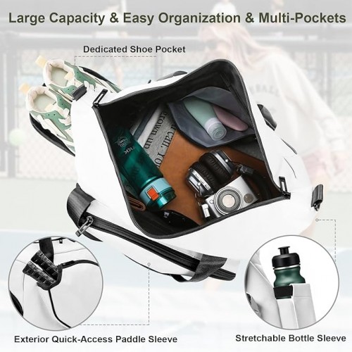 - PICKLEBALL BAGS WITH VENTILATED SHOE COMPARTMENT: Keep your gear fresh with our pickleball tote bag for women featuring a dedicated ventilated shoe compartment – perfect for keeping court shoes clean, dry, and separated. This is one of the top pickleball bags for women with shoe compartment, ideal for daily matches or tournaments