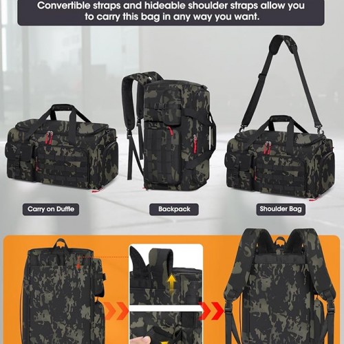 - 3-IN-1 GYM BAG: Versatile design of this gym bag allows it to be carried as a backpack or duffle bag, offering ultimate convenience and flexibility that also looks great in any setting. Whether you prefer backpack style or over-the-shoulder carrying, this bag offers both options. This travel duffel bag seamlessly transitions between different modes of transportation. It is an exceptional piece of luggage that caters to the diverse needs of gym-goers and travelers alike