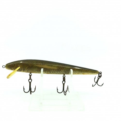 Rebel Floater Walleye Design Minnow. Lure is about 5 3/4″ long. In pretty good condition with some wear on one side but still overall decent. Great for fishing or collection.