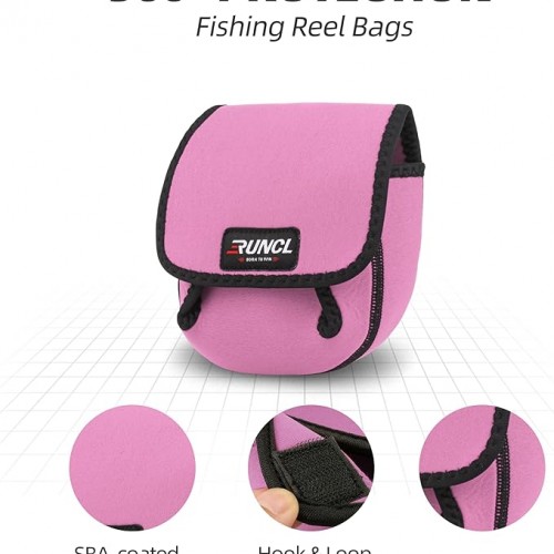 RUNCL Spinning Reel Bag – Protective Storage Pouch for Baitcasting Reels & Spinning Reels, Lightweight & Durable, Ideal for Freshwater & Saltwater Fishing Trips (pink& Black)