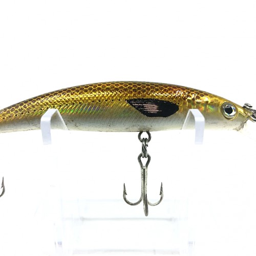 Runner Minnow Gold. At about 3 1/4″ long including the lip this lure is in great condition with little to no wear. This lure is unmarked but is most likely a Matzuo. Perfect lure for most fishermen looking for a great deal. See photos.