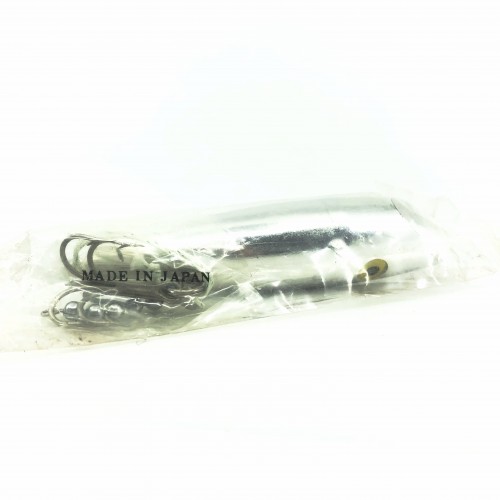 Salmon Plug Chrome. This large plug is in a sealed plastic pouch and is in great condition. Lure is about 4 1/2″ long. Pack includes hook and line for the lure. See photos.