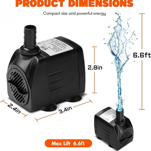 Simple Deluxe Submersible Water Pump For Fish Tank, Hydroponics, Aquaponics, Fountains, Ponds, Statuary, Aquariums & Inline, Black