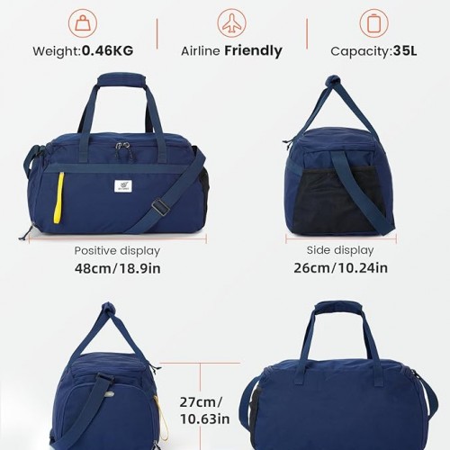 - DUFFLE BAG WITH EXTERNAL WET POCKET : Instantly stash wet towels/swimsuits without unzipping the main duffle. Waterproof liner prevents leaks onto clothes.Very handy travel/gym bag