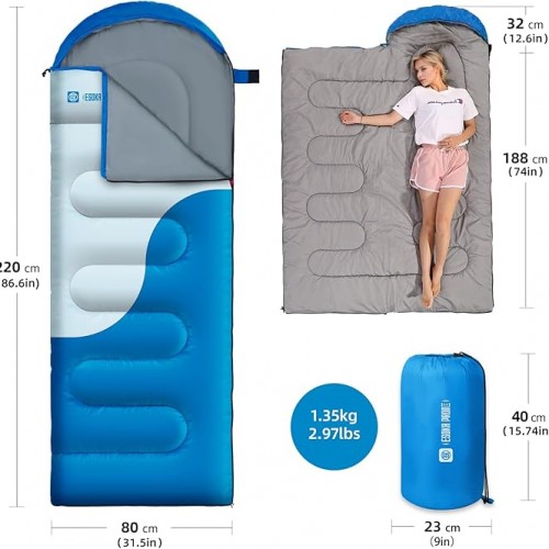 - Comfortable Sleeping Experience:Our sleeping bag can be used in 3 seasons with a design optimal comfort temperature of 59℉,,temp rating 50°F,imit 41°F.This lightweight sleeping bag is perfect for weather camping trips in Spring through to Autumn.Give you a comfortable sleep after a day of adventure outdoor camping, backpacking, hiking, and outdoor travel.