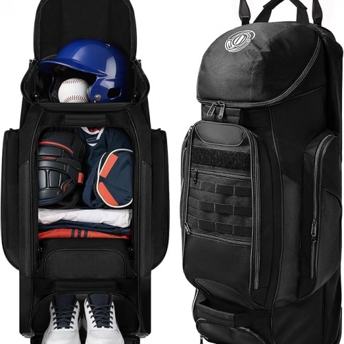 STOVER 80L Rolling Duffel Bag with Wheels, Large 31 Inch Durable Travel Duffle + Toiletry Bag, Heavy Duty, Packable, Foldable w/Shoulder Straps- Use as Luggage or Backpack, Men/Women (Blue)
