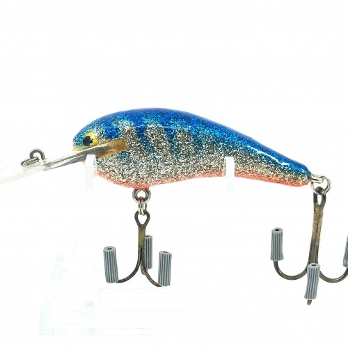 Strike King Dance-N-Shad, Silver Sparkles/Blue Back Color on Card. Early Bill Dance collaboration lure here. Great deal here on a vintage discontinued lure. Lure is used but in overall good condition. Body is about 2 5/8″ long not including the lip. Fish or collect.