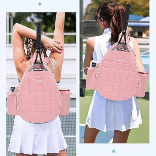 - 【Fashion & Multifunction】This quilted tennis sling crossbody backpack has stylish quilted design and complements various sports outfits. It blends fashion and function, ideal for tennis, pickleball, and badminton players both on and off the court.