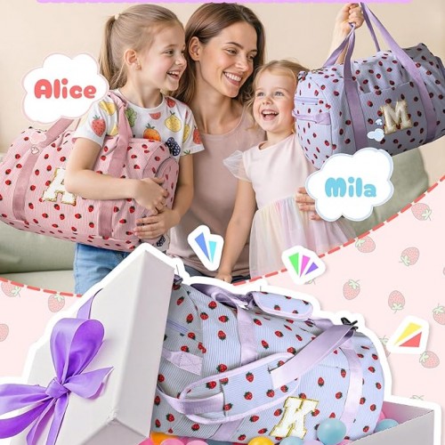 Sweet 16 Gifts, Girls Gym Bag, Kids Personalized Overnight Duffle Bags with Shoe Compartment, Monogram Travel Tote with Makeup Bag, Gift for 8 9 10 11 12 Year Old Girl (Letter T)