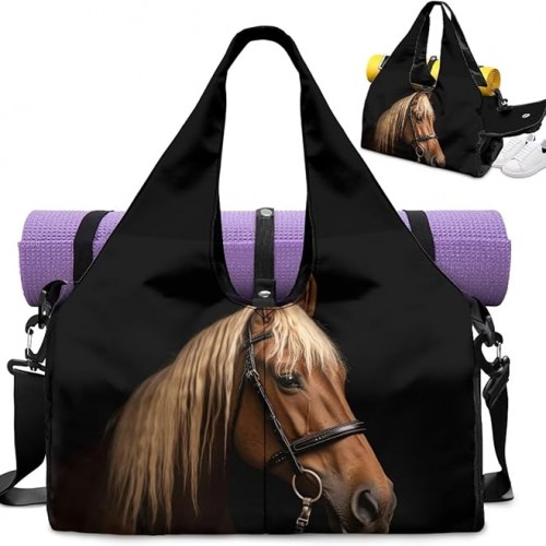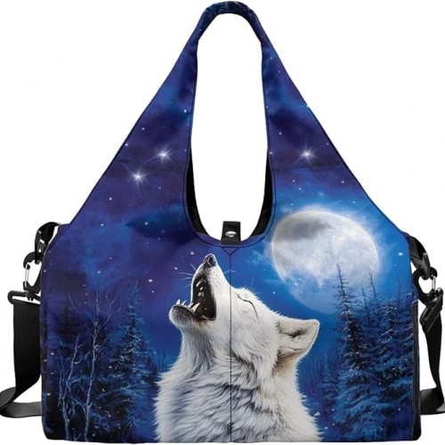 Tansealive Large Capacity Wolf Gym Bag for Men with Shoe Compartment and Yoga Mats Holder Portable Blue Wolf Moon Duffel Bag with Zipper Pockets Workout Fitness Sports Tote Bag with Shoulder Strap