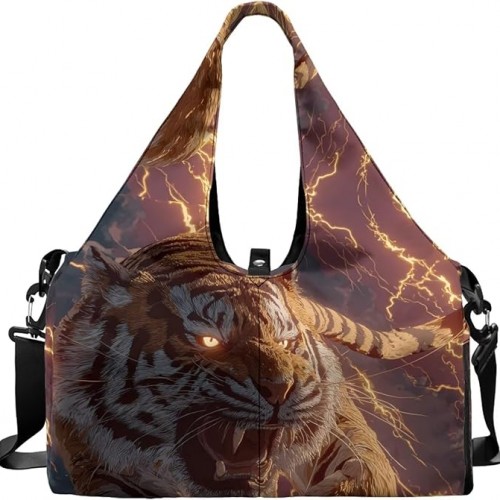 Tansealive Tiger Gym Bag for Men Stylish Sports Bag with Shoe Compartment Water-Resistant Lightweight Duffel Bags with Zipper Pockets Fitness Workout Multi-Functional Yoga Mats Bags with Holder Strap