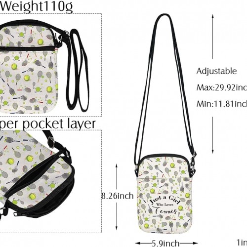 - SIZE Funny Tennis Crossbody Bag size 8.26*5.9 inches (21* 15cm) with Maximum length 29.92 inches (76cm), minimum length 11.81 inches (30cm) adjustable shoulder strap, manual measurement, please allow errors.; which is suitable for most body types. Weight:110g. Each crossbody bag has reinforced handles to enhance durability.