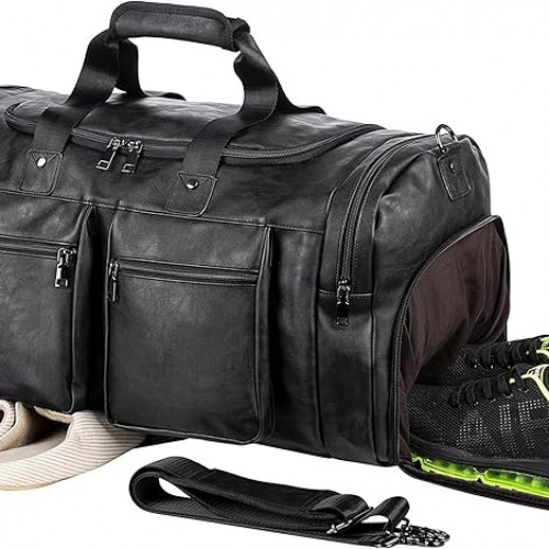 Travel Duffel Bag with Shoes Compartment Sports Gym Bag with Dry Wet Separated Pocket for Men and Women, Overnight Bag Weekender Bag Training Handbag Yoga Bag – White Gray