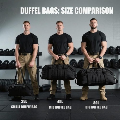 - 【Workout Bags for Gym Men】 The entire duffle pack is clad in MOLLE webbing for the addition of gear and/or pouches.The gym bag is great for workout, travel, sports activity, overnight,basketball,football,yoga, fishing, swimming,camping, hiking,weekender,carry on bag,luggage and many outdoor activities.