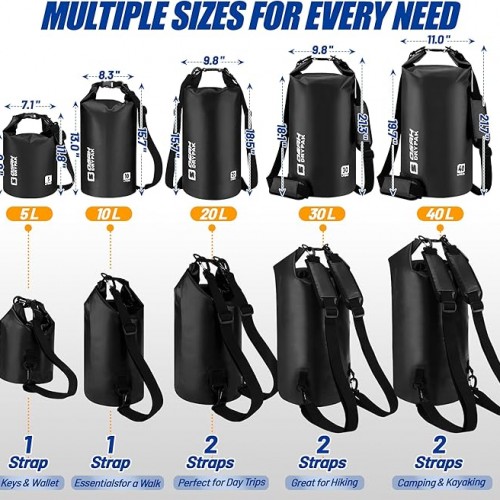 Waterproof Dry Bag, 5L/10L/20L/30L/40L Roll Top Lightweight Storage Backpack with Phone Case for Women & Men, Floating Waterproof Sack for Travel, Swimming, Kayaking, Paddle Board, Camping & Beach