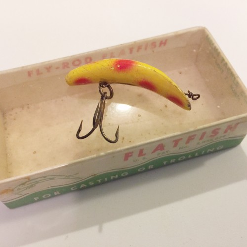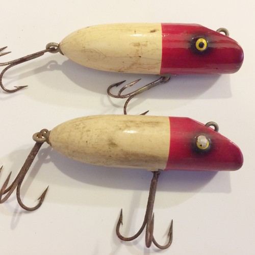 Wright & McGill Miracle Minnow. Great classic bait. Needs new hooks but otherwise decent, see photos. You can see a vintage 1954 ad for this lure in the one photo. Ad is not included with lure but for informational purpose only.