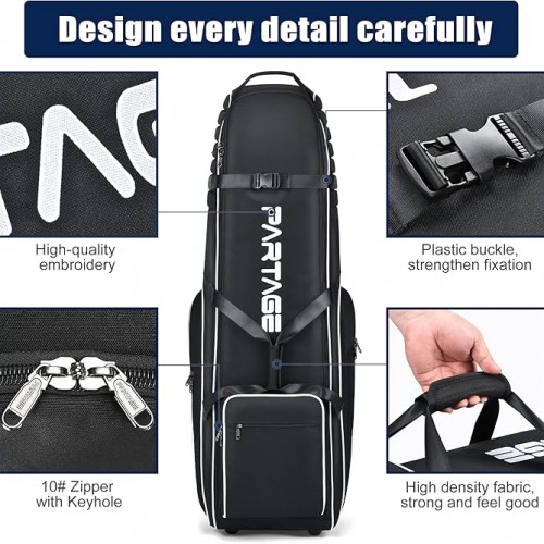 Partage Golf Travel Bag with Wheels, Golf Travel Case for Airlines, 900D Heavy Duty Oxford -Black